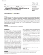 cebook. To understand processes of self-making on TikTok, we undertake two methods of data collection: a walkthrough of the app and its surrounding environment, and 14 semistructured participant interviews. A qualitative analysis of this data finds three distinct themes emerge: (1) awareness of the algorithm, (2) content without context, and (3) self-creation across platforms. These results show that TikTok departs from existing platforms in the model of self-making it engenders, which we term “the algorithmized self”—a complication of the preexisting “networked self” framework." (Abstract)