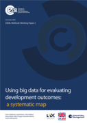 ated data including online searches, social media, citizen reporting or crowdsourced data, process-mediated data such as mobile phone call record details (CRD), commercial transactions data and machine-generated data from satellites, sensors or drones. The primary value of big data is that it is possible to measure outcomes that could not previously be measured using household surveys at the required temporal and spatial scale. The potential of big data to answer causal attribution, however, is still not widely understood, especially in low- and middle-income countries (L&MICs). The report is based on a map of the studies using big data and its objective is to discuss methodological, ethical and practical constraints relating to the use of big data. The systematic map includes impact evaluations (IEs) that use big data to evaluate development outcomes, systematic reviews (SRs) of big data IEs and other measurement studies that innovatively use big data to measure and validate any development outcomes. This study also explores the sectoral and geographical spread of big data's use in international development. This map includes studies written in English and published between 2005 and 2019, regardless of the target country's income level or population's status. We provide detailed breakdowns on the map for different country income classifications, fragile contexts and population characteristics. From the initial list of 17,393 studies we arrived at a final list of 437 studies, which included 48 IEs, 381 measurement studies and 8 SRs." (Executive summary)