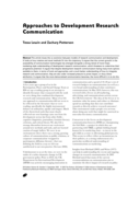 near, marketing-style understanding of development research communication, which threatens to undermine their progressive potential. It argues that despite development research communicators having many more options available to them, in terms of tools and approaches, and a much better understanding of how to integrate research and communication, they are also under increased pressure to prove impact, or show direct attribution. It argues that the more democratised communication becomes, the more difficult it is to do this." (Abstract)