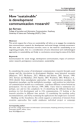 "This article argues that a focus on sustainability will allow us to engage the complexity that communication research for development and social change routinely encounters. We start with a brief historical overview, move to the need for sustainability as an organizing principle, then to a consider