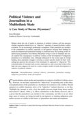 , especially as aid agencies increase their funding for media development and journalism training in conflicted areas. By focusing on the situation facing journalists from Burma (Myanmar) living in exile in Thailand, this article explores the consequences of political violence on the development of indigenous journalism in a multiethnic state. Although influenced by the recent surge in foreign funding, these journalists struggle to develop a context-specific model for their work, calling into question the relevance of the dominant U.S. approach to “objectivity.” The contested nature of concepts such as unity, independence, and censorship in these often high-risk areas suggests the need for a more complex model of media development in contexts of political violence." (Abstract)