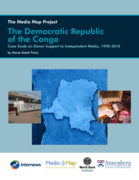 he lack of access to electricity. Despite this hugely diverse media landscape, citizens in the provinces are often deprived of access to information, as the media are most concentrated in the capital city, Kinshasa. Congolese media outlets are characterized by poor content, a severe shortage of material and technical capacity, and significant sustainability problems. Journalists work in an unsafe environment, lack regular salaries and protection, and regularly struggle with threats to press freedom. The legal and regulatory framework does not provide sufficient guarantees and basic regulations to ensure that media outlets abandon their “informal” practices. The advertising market is still undeveloped and disorganized, providing little financial backing to media companies. The supposedly “public” broadcaster is the mouthpiece of the government, and the only “public service broadcaster” is Radio Okapi, a UN-based station. In such an unfavorable context, the involvement of donors has become increasingly important over the last 20 years. The reasons why donors have intervened and continue to support the media sector are tied to the country’s political situation. The media have thus been supported for a variety of reasons: from 1990 to 1997: to encourage new democratic media freedoms; from 2000 to 2004: to promote a return to peace and reconstruction during negotiations to solve the conflict; from 2004 to 2007: to enable the media to play their part during the electoral process, as the first democratic elections during the last 40 years took place in 2006; from 2007 to 2011: to establish a solid and responsible press likely to take part in the consolidation of democracy. Reaching $80 million over the past ten years, media support by donors and operators has varied, essentially covering five types of activities: the creation of “neutral” and “apolitical” media and content (a recurring strategy in post-conflict countries); direct support (funds or equipment) for a number of outlets; media staff training; strengthening of the sector’s professional organizations and associations; consolidation of public institutions to organize the sector (including regulation and legal reform). Each of these types of interventions has generated both positive impacts and negative effects on individual journalists, newsrooms, media outlets and local organizations in the media sector. Beneficiaries, donors, and INGOs have all advanced their own critiques regarding the ways in which media support initiatives have been designed, implemented and assessed so far. They also make suggestions about how to improve media support in the future, to make it more consistent with the needs of the local Congolese media." (Executive summary, page 6-7