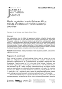 ntal issue for democratic consolidation, and one that has received different responses in the French - and English-speaking African public spheres. This article examines the current situation of media regulation authorities in French-speaking sub-Saharan Africa. It outlines the mission of these institutions and identifies the problems they face as they concretise the dialectic between freedom and public control in the media landscape." (Abstract)