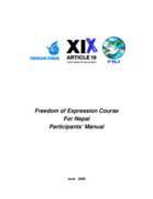 "This Manual is primarily designed to be used as a resource for a training course for laypersons on the basics of freedom of expression. It is intended to be used course participants, as well as by the trainers delivering it. While it is largely selfexplanatory, at the same time training will work b