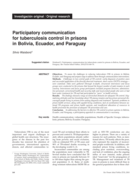 of the directly observed treatment, short course (DOTS) strategy— were examined. Data were gathered (through in-depth, structured interviews) and focus groups were conducted in the prisons that housed the largest number of male inmates in each country. Interviewees and focus group participants included program directors, administrative personnel, correctional health and security staff, and incarcerated people who were or had been under treatment for TB and had participated as “peers” in health services. Results: the findings showed a range of entrenched obstacles for adequate TB control. Stigmatizing attitudes and low knowledge about TB among inmates and key prison personnel discouraged people living in prisons from seeking diagnosis and treatment. Systemic problems in prison health services, along with squalid living conditions, lack of coordination between national TB programs and prison health systems, and insufficient allocation of resources to health prevented the provision of adequate TB prevention and care. Conclusion: in addressing the barriers to effective TB control in prison systems in Bolivia, Ecuador, and Paraguay, a participatory approach to communication is necessary." (Abstract)
