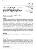 ternative media under the so-called ‘New Dispensation’ of President Mnangagwa with its promises of prodemocracy reforms. Using political economy as a theoretical approach that analyses media systems in a holistic manner by linking them to politics, economy, legislation and technology, this study assesses the extent to which the ‘New Dispensation’ has implemented political economy reforms that impact alternative media. Drawing from interviews with selected alternative media journalists and proprietors, the findings reveal that alternative media in Zimbabwe remain entrenched in repression and are in a crisis caused by an exacerbation of the same structural factors that existed before. The ‘New Dispensation’ has instead led to the entrenchment of a new dictatorship by the military junta. Undue political interference, a fragile economy and state orchestrated repression continue to constrain the democratic functions of alternative media. By teasing the continuities and discontinuities of alternative media repression during the Mugabe era and under the ‘New Dispensation’, the paper contributes to ongoing debates about the consequence of the 2017 coup and the need for genuine democratic reforms in Zimbabwe post-Mugabe epoch." (Abstract)