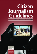 ing and mobile reporting. The manual will offer useful tips to citizen journalists on how to write an election story for diverse platforms that include SMS, social media, radio, newspapers, newsletters, among others, capturing the essence of a story, facts, and voices and transmit that information on these platforms. It also focuses on how to gather, share, upload, livestream various pieces of information ranging from text, audio, videos and photos." (Preface)