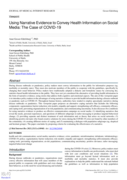 raditionally adopted a didactic and formalistic stance by conveying dry, statistics-based health information to the public. They have not yetconsidered the alternative of providing health information in the form of narrative evidence, using stories that address both cognitive and emotional aspects. The aim of this viewpoint paper is to introduce policy makers to the advantages of using narrative evidence to provide health information during a disease outbreak or pandemic such as COVID-19. Throughout human history, authorities have tended to employ apocalyptic narratives during disease outbreaks or pandemics. This viewpoint paper proposes an alternative coping narrative that includes the following components: segmentation; barrier reduction; role models; empathy and support; strengthening self-efficacy, community efficacy, and coping tools; preventing stigmatization of at-risk populations; and communicating uncertainty. It also discusses five conditions for using narrative evidence to produce an effective communication campaign on social media: (1) identifying narratives that reveal the needs, personal experiences, and questions of different subgroups to tailor messaging to produce targeted behavioral change; (2) providing separate and distinct treatment of each information unit or theory that arises on social networks; (3) identifying positive deviants who found creative solutions for stress during the COVID-19 crisis not found by other members of the community; (4) creating different stories of coping; and (5) maintaining a dialogue with population subgroups (eg, skeptical and hesitant groups). The paper concludes by proposing criteria for evaluating the effectiveness of a narrative." (Abstract)