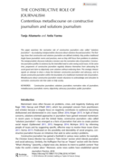 -Saxon journalistic norms and practices, even as they shift focus from problems to solutions. The metajournalistic discourse indicates a tension over the normative roles of journalism. Constructive journalism justifies its existence by the intensified need to solve vexing social issues. At the same time, proponents of constructive journalism regularly distance themselves from advocating for social good and claim to objectively cover solutions without endorsing them. This strategic rhetoric signals an attempt to draw a sharp line between constructive journalism and advocacy, and to situate constructive journalism within the boundaries of a traditional monitorial role of journalism. Metadiscourse about constructive journalism reveals reluctance to acknowledge and articulate its normative constructive role that seeks to help society." (Abstract)
