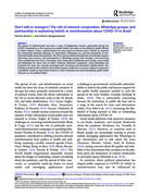 relationship between pathways to information, WhatsApp use, and the persistence of misinformed beliefs about the pandemic. We find a strong relationship between presidential support, right-wing news sources, and participating in WhatsApp groups with strangers, and becoming more misinformed over time. Conversely, most media diets (traditional news media, social media and WhatsApp for news) had no effect. However, Bolsonaro supporters, using WhatsApp and Facebook for news was strongly associated with increasing and persistent misinformation. Our findings provide further evidence that political leaders undermine a country’s ability to respond to a pandemic insofar as they breed mistrust in other institutions by instrumentalizing public health measures to win political fights." (Abstract)
