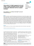 e a promising solution—the purposive embedding and tracking of unique content elements as “markers” using text analytics techniques. Four markers were introduced in an Indian melodramatic television serial, Main Kuch Bhi Kar Sakti Hoon (I, A Woman, Can Achieve Anything), which was part of a larger transmedia edutainment initiative in India to promote sanitation, family planning, and gender equality. These markers served as anchors for audience engagement with the originally intended messaging embedded in the narratives as well as for program monitoring and evaluation. We applied various web-based tools to systematically track marker-related engagement on Facebook, Twitter, and YouTube across eight months. We also conducted semantic network analysis to better understand how marker-related social media comments evolved over time. Our investigation of using markers for digital engagement and narrative exchange in MKBKSH makes an important and timely methodological contribution to the scholarship and praxis of social and behavior change communication." (Abstract)