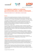 "De acordo com a mais recente pesquisa do Afrobarometer, os Angolanos concordam amplamente que a imprensa deve agir como um fiscalizador do governo, investigando os seus erros e os casos de corrupção para os reportar. Os cidadãos valorizam a liberdade de imprensa e rejeitam a noção de que a inf
