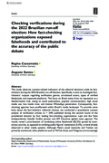 "This study observes content-related indicators of the editorial decisions made by factcheckers during the 2022 Brazilian run-off election. Specifically, it aims to investigate factcheckers’ outputs regarding verification genres, scrutinized actors, types of verified falsehoods, and inspected plat