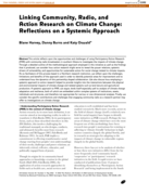 the findings that it produced, we consider how action research might serve to reveal the power relations, systemic drivers of vulnerability, and opportunities for sustainable action for social change related to climate impacts. As co-facilitators of this process based in a Northern research institution, we reflect upon the challenges, limitations and benefits of the approach used in order to identify potential areas for improvement and to understand how the dynamics of this partnership shaped collaboration. We also discuss how employing a systemic approach to action research helped to provide insights into the interactions between the physical and environmental impacts of climate change and related systems such as land tenure and agricultural production. A systemic approach to PAR, we argue, lends itself especially well to analysis of climate change adaptation and resilience, both of which are embedded within complex systems of institutions, assets, individuals and structures, and therefore not appropriate for narrow or one-dimensional analyses. Finally, we consider the specific contributions and challenges that engaging community radio as a research partner may offer to investigations on climate change." (Abstract)