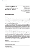 ting paradigms. While community radio is generally presented as a highly democratic, participatory medium, the way it is operationalized in India more closely aligns with the modernization/diffusion paradigm. In 1976, Joseph Ascroft observed the phenomenon of ‘interpersonal diffusion’ among farmers, whereby for each farmer trained in new techniques, three more would adopt the innovations. While this ‘interpersonal diffusion’ was by no means perfect, it was illustrative of the complex communication networks involved in the diffusion process. It also hints towards the ways in which community radio can act as a facilitator of these processes; as somewhat of an intersection between diffusion and participatory communication. Drawing on ethnographically inspired qualitative research conducted at a rural community radio station in South India, this article explores the role of community radio at the intersections of participatory development and diffusion. This article argues that community radio facilitates the sharing of technical information and innovations among farmers and contributes to amplifying existing knowledge communication systems. The implications of this article suggest that a focus on existing local knowledge communication and transfer systems could contribute to achieving broader development outcomes and further situating the role of community radio within development and social change initiatives." (Abstract)