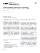 advance a more comprehensive understanding of how organizations manage accountability demands in the digital era. To address this gap, this study proposes a conceptual framework to explain how organizations’ STC on social media (SM) is shaped by STC via non-SM channels and their external communication capacity and the resulting STC outcomes in the SM domain. Survey data from 156 humanitarian relief and development organizations on four continents showed that using non-SM channels to engage various groups of stakeholders helped build organizations’ external communication capacity, which in turn helped improve their engagement in STC on SM. STC on SM further contributed to organizations’ success in information dissemination, community building, and action mobilization outcomes on SM." (Abstract)