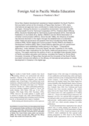 been AusAID, Commonwealth Fund for Technical Cooperation (CFTC), Friedrich-Ebert-Stiftung (FES), Deutsche Gesellschaft für Technische Zusammenarbeit (GTZ), International Federation of Journalists (IFJ), NZAid, UNESCO and the World Association of Christian Communication (WACC). Since the late 1990s, the influence of AusAID has become dominant in the region through the establishment of multimillion dollar media and governance aid projects that have included the Pacific Media Initiative (PMI), Pacific Media and Communication Facility (PMCF) and Media in Development Initiative (MID). Many United Nations agencies and non-government organisations have established media training in the region. “Chequebook diplomacy” rivalry between China and Taiwan has also impacted on the media. The trend has major implications for the Pacific media and governance in the 21st century. This paper examines the politics of aid in an abridged three-decade history of Pacific journalism education and training, considers the impact on Divine Word University, University of Papua New Guinea and the University of the South Pacific journalism schools and reflects on the efficacy of international aid policies on media development in Oceania in the digital age." (Abstract)