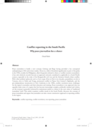 journalism’, it has only relatively recently become an approach seriously considered as applicable in a South Pacific context, especially in the wake of the Bougainville civil war and the Solomon Islands ethnic conflict. With other political upheavals such as four coups d’état in Fiji in two decades, paramilitary revolts in Vanuatu, riots in Tahiti and Tonga, protracted conflict in Papua New Guinea’s Highlands, and the pro-independence insurrection in New Caledonia in the 1980s, conflict resolution poses challenges for the region’s journalists and their education and training. Peace journalism is one approach that can arguably make sense of a region that has become increasingly complex, politically strained and violent, yet the concept is generally eschewed by mainstream media as a threat to the core values of ‘traditional journalism’ itself. This article examines conflict trends in the South Pacific, discusses the concept of peace journalism and argues that journalists can take a more constructive approach to reporting conflict in the region. (Abstract)