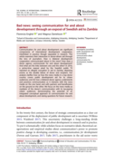 municated about in the news? How does a donor agency communicate for and about development? And what are the links between one and the other? In 2016, a prime-time exposé aired by the Swedish public TV reported on alleged corruption in aid to Zambia, depicting events as the double failure of donor and recipient. Our analysis clarifies how (a) how the news media in a top donor country covers public development aid for its citizen audiences; and (b) how a bilateral donor agency understands and practices communication as it interacts with the news media on the one hand, and with partners and beneficiaries on the ground on the other. We focus on the news media as mediator of the donor’s communication with its tax-paying citizen audiences, demonstrating the potential of an integrated conceptual approach to communication for and about development, and raising questions for future research." (Abstract)