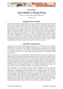 holders, “to be a detached observer” was treated as important only by slightly more than half of the respondents. Twelve of the 18 roles included in the questionnaire were treated as important by fewer than half of the respondents. About one-third saw the advocacy role of the press as important, and about three in ten saw setting the political agenda and motivating people to participate in politics as important. The Hong Kong journalists were least likely to see conveying a positive image of political leadership, supporting government policy, providing entertainment and relaxation, and supporting national development as important roles. However, the percentage of journalists seeing the press as an adversary of the government is also low (14.4%). It indicates that the Hong Kong journalists saw themselves as an independent watchdog without being an adversary to the power holders." (Journalistic roles, page 2)