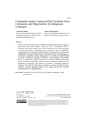 content analysis of community radio platforms on Facebook reveals that some multilingual community radio stations still maintain their local languages in written text as captions or print, although there is a tendency towards English and major indigenous language dominance. Using language revitalisation theory, we argue that merging written text with radio on social media should always maintain the distinctness of radio and text as implant that reflect the local languages of community radio stations to revitalise or strengthen indigenous languages. We find the affordances of digital connection through Facebook useful to revitalise languages which are no longer used in the everyday communication of a digital audience." (Abstract)