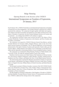 t only debate and discussion on the future of freedom of expression, but also fostered dialogue between civil society and governments – an exchange that UNESCO will continue to support. The symposium consisted of three main sessions devoted to The Status of Press Freedom Worldwide, Freedom of Expression on the Internet, and Press Freedom and the Safety of Journalists. The conference was opened by UNESCO Director-General Irina Bokova, and the Swedish Minister for European Affairs, Birgitta Ohlsson, spoke on the role of free speech and government accountability. The UN Special Rapporteur on the promotion and protection of the right to freedom of opinion and expression, Frank La Rue, gave the keynote address, calling attention to the impact of new technologies on the field of journalism and the importance of promoting freedom of access alongside freedom of speech. The symposium was moderated by Helge Rønning, Professor of Media Studies at the University of Oslo. He made the opening remarks at each of the sessions." (Page 111)