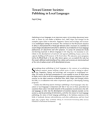 en developing training programmes for textbook authors to create local capacity in the writing of textbooks for local language teaching. It reports about the main lessons learnt during the execution of the programme. Ingrid Jung argues that the development of societies depends crucially on the access to and the written processing of information, and discusses what this means for local language publishing. She concludes that the present situation in Africa is characterized by a broad gap between what is necessary to contribute to social change and education, and what local book industries offer in the field of local language publications for educational and other purposes. “To satisfy the demand for books and learning materials in African languages in the long run, it is necessary to contribute to the development of national and regional publishing houses and to the capacity building of all links of the book chain." (Hans M. Zell, Publishing, Books & Reading in Sub-Saharan Africa, 3d ed. 2008, nr. 2108)