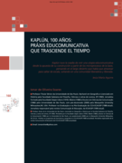 los 100 años de nacimiento de Mario Kaplún, realizado de forma virtual, a partir de una articulación de instituciones académicas, investigativas y asociativas latinoamericanas, desde La Paz, Bolivia y Quito, Ecuador, entre 30 y 31 de agosto de 2023. El artículo propone, al inicio, un recorrido por eventos y actividades que marcaron los últimos años de Mario Kaplún, entre 1996 y 1998. Luego, recuerda hechos que permiten identificar el aprecio por el escritor y activista, por parte de latinoamericanos y europeos, durante las dos décadas posteriores a la su muerte. El texto esclarece cómo la teoría del comunicador popular facilita la articulación entre la “comunicación comunitaria” y la “práctica educomunicativa”, tanto en pequeñas comunidades locales como en acciones de gran escala. Agrega, al final, a modo de ejemplo, los resultados de un estudio realizado en Brasil, que demuestra cómo la educomunicación kapluniana logró garantizar - a través de una comunicación dialógica y participativa - la eficacia, coherencia y amplitud de la acción comunicativa del Movimiento de los Trabajadores Rurales Sin Tierra (MST), implementado, en las últimas décadas, en Brasil, integrando 400.000 familias distribuidas en el vasto territorio geográfico del país." (Resumen)
