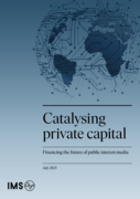 ion ecosystems. Drawing on expert interviews and case studies, it assesses both the demand side – how to build investable media enterprises, and the supply side – which financing tools are best suited to different political and economic contexts? The private sector alone will not save journalism, but it cannot remain on the sidelines. New capital, new actors and new models are urgently needed to sustain public interest media. The present report addresses the following questions: What is the rationale for catalysing private capital to support public interest media? What funding sources – such as development finance institutions, impact funds, venture capital, family offices and community lenders – could be leveraged? What financial vehicles – concessional loans, equity investments, blended finance, impact bonds – are most promising for the media sector? What can be learned from applying impact investing approaches from other sectors to journalism? Can private sector approaches incentivise new business models and greater financial resilience among public interest media outlets?" (Introduction, page 5)