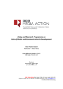 "This is the final report of the Policy and Research Programme on the Role of Media and Communication Development. It provides a narrative overview of progress and impact between April 2010 and March 2012 of the DFID funded Policy and Research Programme on the Role of Media in Development, building