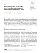 ularly known in Brazil as the Office of Hatred (OOH). By harnessing in-depth expert interviews with documentarians of the office’s daily operations—researchers, journalists, and fact-checkers (N = 10)—this study draws up a chronology of the OOH. Via this methodological approach, we trace and chronologize events, actions, and actors associated with the OOH. Specifically, findings (a) document the rise of antipetismo and disinformation campaigns associated with attacks on the Brazilian Worker’s party from 2012 until the election of Bolsonaro in 2018, (b) describe the emergence of the OOH at the heels of the election and subsequent radicalization in WhatsApp groups, (c) provide an overview of the types of disinformation that are spread on the app by the OOH, and (d) illustrate how the OOH operates by mapping key actors and places, communicative strategies, and audiences. These findings are discussed in light of ramifications that government-sponsored forms of disinformation might have in other antidemocratic polities marked by strongman populist leadership." (Abstract)
