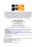 t reforms are made. In this book we will show you how they do this, and how you can do it too [...] These chapters will walk you through the process of “video advocacy.” By this phrase we mean the use of video as an essential tool in social justice activism—one that can be deployed as strategically and effectively as more traditional forms of “advocacy” referring to the range of ways to exert pressure for a defi ned goal of change, including persuasion, relationship-building, lobbying, organizing, and mobilizing. We will draw on the inspiring real-life experiences of social justice video advocates worldwide—groups that have worked with the human rights organization WITNESS where I work, and a range of other wellknown and lesser-known fi gures in the activist universe. Throughout you’ll fi nd an emphasis on the emotional and empathetic aspect of video, on its humanizing ability to communicate across boundaries. We also stress the need for collaboration within organizations and among outside allies to more successfully facilitate the production and use of video." (Introduction, page xii-xiii)