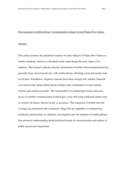 bile phones affording social interaction with loved ones. Nonetheless, negative concerns have been strongly felt, notably financial costs and anxiety about mobile phones aiding in the coordination of extramarital liaisons and criminal activities. The communities investigated previously had scant access to modern communication technologies, some still using traditional means such as wooden slit drums, known locally as garamuts. The expansion of mobile network coverage has introduced into communal village life the capability to communicate dyadically and privately at a distance. Investigation into the adoption of mobile phones thus promotes understanding about traditional means of communication and notions of public and private interactions." (Abstract)