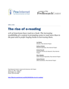 er long-form content such as magazines, journals, and news articles in digital format on an e-book reader, tablet computer, regular computer, or cell phone. Those who have taken the plunge into reading e-books stand out in almost every way from other kinds of readers. Foremost, they are relatively avid readers of books in all formats: 88% of those who read e-books in the past 12 months also read printed books.2 Compared with other book readers, they read more books. They read more frequently for a host of reasons: for pleasure, for research, for current events, and for work or school." (Summary of findings, page 3)