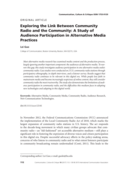 "Most alternative media research has examined media content and the production process, largely ignoring another important component: the audiences of alternative media. To narrow this gap, this study investigates audience participation in one alternative media outlet: community radio. Case studies