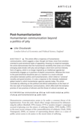 "This article offers a trajectory of humanitarian communication, which suggests a clear, though not linear, move from emotion-oriented to post-emotional styles of appealing. Drawing on empirical examples, the article demonstrates that the humanitarian sensibility that arises out of these emerging st