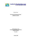 "In this reader media experts discuss the prospects and problems of program exchange between German and Chinese Broadcasters. They explain that program exchange is not the cockaigne one could assume with regard to the non-rivalry of media content and the huge Chinese TV market (more than 300 million