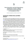n and Eurocentric discourses of knowledge-production. As the decolonial turn takes centre stage across Africa, this collection further rethinks media and communication research in a post-colonial setting and provides empirical evidence as to why some of the methods conceptualised in Europe will not work in Africa. The result is a thorough appraisal of the current threats, challenges and opportunities facing the discipline on the continent." (Publisher description)
