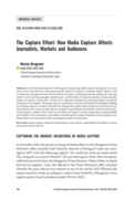 ingly sophisticated, and the body of research aimed at measuring the impact of capture, which now consists of a collection of disparate analytical papers primarily focused on case studies. This paper aims to contribute to this second body of knowledge: building on existing research, it looks to identify the changes that media capture leads to in three key areas: journalism (with a focus on the impact of capture on professional standards and the performance of journalists), market (with a focus on the effects of capture on free competition, market health and viability of investments), and audience (analysing the content limitations that audiences are faced with in environments where propaganda media is dominant)." (Abstract)