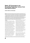 "This article examines the changing role of radio for development in sub-Saharan Africa as ‘new’ Information and Communication Technologies (ICTs) increasingly enter the information landscape. Grounded in the empirical findings of a research programme – Radio, Convergence and Development in Af