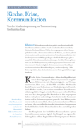 unikation: Bei Großereignissen wie Weltjugendtagen oder Katholikentagen gibt es ausgefeilte Krisenkommunikationskonzepte. Bei allen Krisen geht es stets um die Wiedergewinnung verloren gegangenen Vertrauens und eine erneuerte Glaubwürdigkeit. Krisenszenarien und Grundlagen zur kommunikativen Krisenbewältigung werden aufgezeigt. Jede Krise zeigt dabei, dass die Institution aus der Krise gestärkt hervorgehen kann." (Abstract)