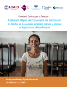 "Esta Evaluación del Ecosistema de Información (IEA) aborda, desde la demanda, el flujo de información para el acceso a servicios en protección de derechos de la comunidad migrante y retornada en Bogotá, el área metropolitana de Cúcuta y los municipios de Maicao y Riohacha en La Guajira. La i