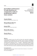 or whether - organizational variables account for variation in role performance across countries, and the performance of specific journalistic roles that prevail in regions with post-authoritarian political trajectories. This article tackles these three issues by comparatively measuring journalistic performance in five Latin American countries. Based on a content analysis of 9841 news items from 18 newspapers, this article reports findings from Brazil, Chile, Cuba, Ecuador and Mexico, by analyzing the presence of the 'interventionist', 'watchdog', 'loyal', 'service','infotainment', and 'civic' roles. Results show that the region is far from homogeneous and that while 'country' is a strong predictor for most of the roles, other variables such as 'media type', 'political orientation', and 'news topic' are also significant predictors to varying levels." (Abstract)