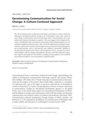 "The role of communication in planned social change is portrayed as a linear conduit for inducing pro-development behavior change in the "undeveloped" world. Later versions of social change communication started incorporating culture and participation into multicultural participatory development pro