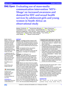"Objective: To investigate the effect of exposure to MTV Shuga:Down South’ (MTVShuga-DS) during the scale-up of combination HIV-prevention interventions on awareness and uptake of sexual reproductive health (SRH) and HIV-prevention services by adolescent girls and young women (AGYW) [...] Conclusi