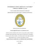 Pablo”, Regional La Paz (UCB). Este proyecto partió de la colaboración con la Revista 88 Grados, que será abordada más adelante, por la cual estos integrantes conformaron un grupo del mismo nombre. La estrategia elaborada se podrá hallar al final de la recopilación de los datos empíricos y estará dividida en dos partes (véase Estrategia de comunicación inicial y Estrategia de comunicación final). No obstante, en líneas generales, ambas versiones rescatan la importancia de difundir la labor social de la Revista y la necesidad de transformarla en una verdadera e-magazine, concepto desarrollado en el capítulo 3." (Introducción, página 1)