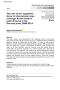 "This paper analyses the predominance of the ‘negativity’ factor as the primary determinant of news coverage in the German press – Süddeutsche Zeitung, Frankfurter Allgemeine Zeitung, Die Tageszeitung and Der Spiegel – of events in Latin America. Based on a sample of 3831 articles published