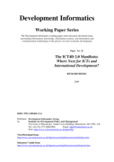 of the effect of that investment. Put simply, there is far too little impact assessment of ICT4D projects. In part that reflects a lack of political will and motivation. But in part it also reflects a lack of knowledge about how to undertake impact assessment of ICT4D. This Compendium aims to address that lack of knowledge. It presents a set of frameworks that can be used by ICT4D practitioners, policy-makers and consultants to understand the impact of informatics initiatives in developing countries. The Compendium is arranged into three parts: overview – explains the basis for understanding impact assessment of ICT4D projects, and the different assessment frameworks that can be used; frameworks – summarises a series of impact assessment frameworks, each one drawing from a different perspective; bibliography – a tabular summary of real-world examples of ICT4D impact assessment." (Introduction, page iii)