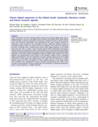 development, this phenomenon has been relatively ignored by researchers to date. However, it has nonetheless now been sufficiently studied to warrant a systematic literature review, the results of which are reported in this article. The article has two aims: to identify what is already known about China’s digital expansion in the Global South and, from this, to outline a future research agenda. After characterizing the features, research design, and perspectives within current literature, the article overviews China’s digital expansion. It outlines this expansion’s synergies, tensions, strategies, design and implementation approaches, and evidence about development impact on Global South countries. The article explores two domain-specific issues arising in the literature: whether China is exporting “digital authoritarianism,” and the implications of China’s growing digital presence for digital governance at both global and national levels. The article ends by laying out a six-part research agenda for future investigation of China’s digital expansion in the Global South: more Southern voices, updating the scope of research, moving beyond the “Team China” monolith, steering between Chinese exceptionalism and identicalism, evaluating development impact, and local agency in a “digital Cold War.” "(Abstract)