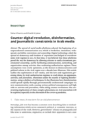 in 2011. At that time, it was believed that these platforms paved the way for democracy by allowing citizens to easily circumvent governmental censorship, and by facilitating communication, networking, and organization among activists, thus weakening authoritarian regimes. These assumptions were overly optimistic, as the detours in democratization and political reform in the Arab region over a decade later illustrate. This article tackles the exploitation of new media, and the laws and regulations governing them, by Arab authoritarian regimes to crack down on opponents, activists, and journalists, oftentimes under the mantle of fighting disinformation, using a plethora of techniques. It also illustrates how disinformation could spread rapidly through governmentally orchestrated campaigns via new communication tools, causing serious political consequences and high risks to activists and journalists, while aiding counter revolutions. The constraining implications of these complex phenomena on Arab journalism will be explored, especially in the aftermath of the COVID-19 pandemic." (Abstract)
